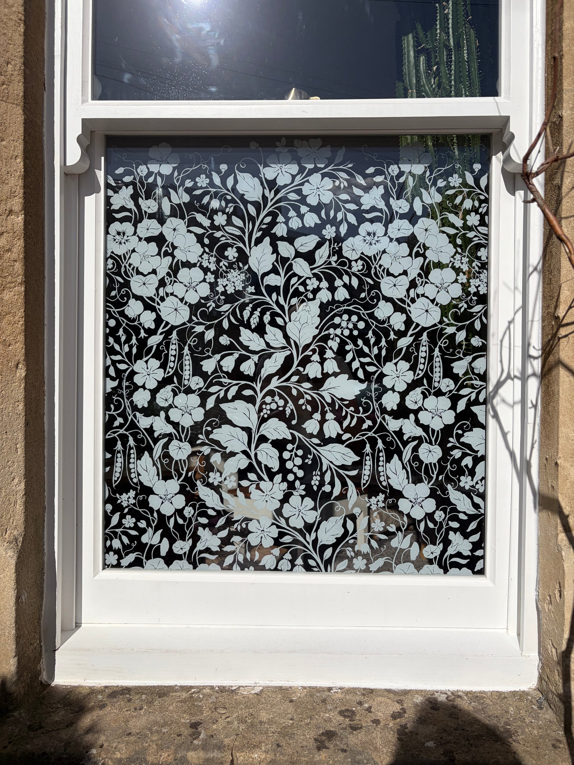 Our newest addition, The Wildflower design is a beautiful hand-drawn pattern that trails up your window and finishes just before the top of your pane.